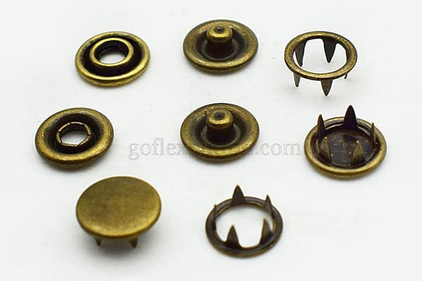 Another important application is Prong snap fasteners for leather products. Leather jackets, belts, wallets, handbags, and boots frequently use prong snap fasteners due to their strong gripping ability and attractive metallic finish. The prong design allows the snap to firmly attach to thicker leather materials without damaging the structure of the product.